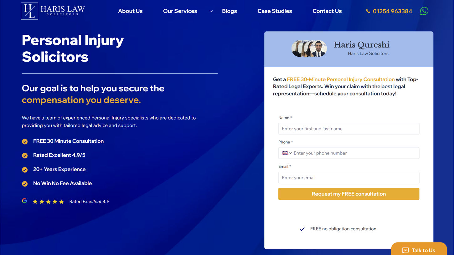Haris Law, led by Haris Quereshi, are a leading law firm based in Blackburn, Lancashire specialising in Family, Immigration and Personal Injury Law. We were apprached initially to build new landing pages for their website. Haris loved it so much he gave us the go ahead to redesign the entire website!